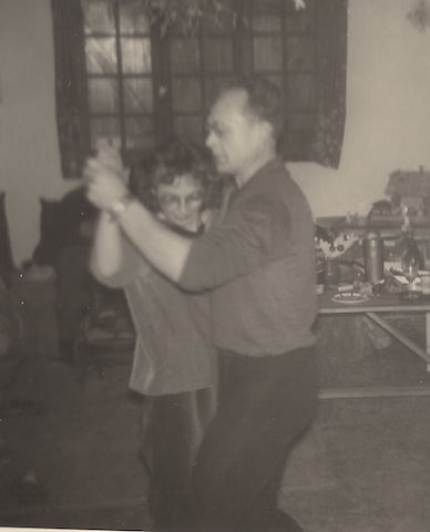 l'atmosphère. Milan et Simone, non pas la première épouse de Pierre, celle de Jo alias Clovis, ouvrent la partie dansante de la soirée. Electrophone à piles un peu aphone pour une grande pièce. |
