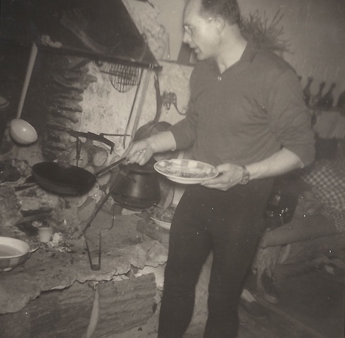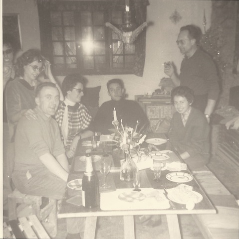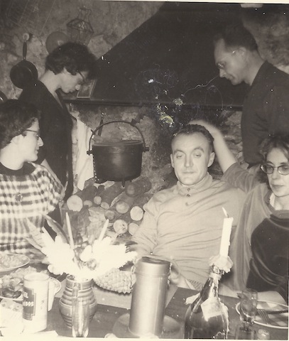 Nouvel an 31 Décembre 1958 Le premier cercle des intimes réveillonne au Mesnil : les Jousselin, Monette et son deuxième mari Jean Marais, le fumeur de pipe, connu comme acteur sous le pseudonyme de Jean Marrot et (????) assise juste devant Milan. |