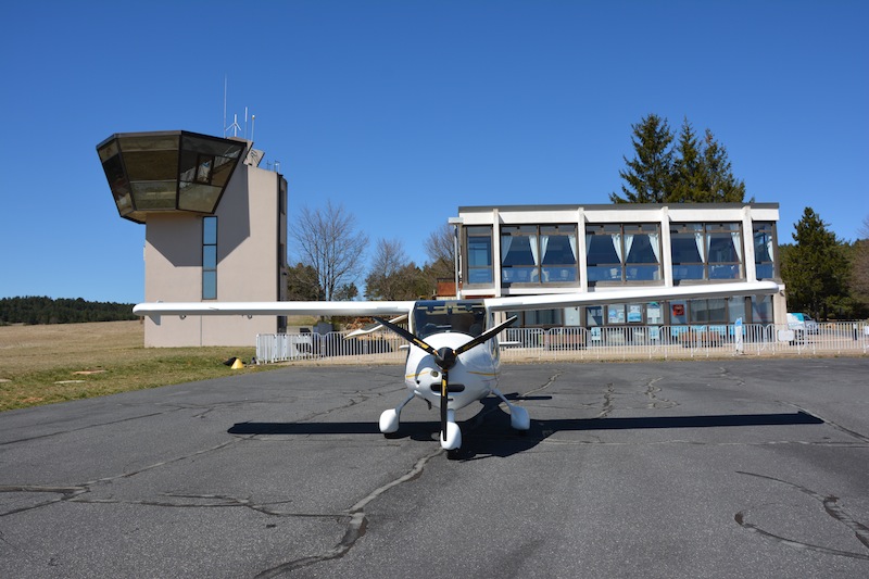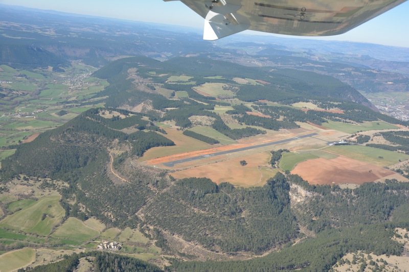 pente. Comme je parque l'avion parallèle à la façade du restaurant, l'aile gauche surplombe l'aile droite, à chacun de mes départs le réservoir gauche s'est déversé dans le réservoir droit. L'AFIS, lorsqu'il opère est d'une courtoisie remarquable, comme le patron de l'Estancot. Je ne sais lequel a déteint sur l'autre ou si c'est une tradition de la Lozère. |